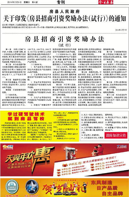 《房县招商引资奖励办法(试行)》已经2014年1月14日县人民政府第七次常务会议通过,现予印发,请认真贯彻执行。