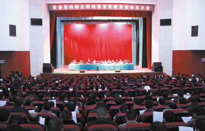 县委书记沈明云作动员讲话。沈明云指出,开展党的群众路线教育实践活动是新一届中央领导集体站在党要管党、从严治党的高度,提高党的建设科学化水平的创造性探索。全县党员干部要从确保党长期执政的时代高度,从当前作风建设面临的严峻形势,从加快房县跨越发展、全面推进“六区”建设的现实需要,充分认识此次教育实践活动的重要性、严肃性和紧迫性,切实从思想、政治和行动上增强开展好活动的自觉性。