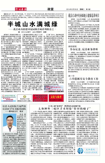 春节前夕,我县成功荣获2013年国家园林县城的消息为马年新春增添了一抹亮色。2月8日,熠熠生辉的“国家园林县城”奖牌在全县三级干部大会上展示,引起了与会人员的热烈掌声。