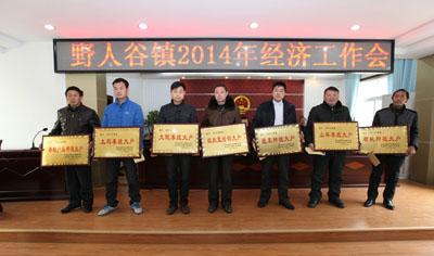 日前,野人谷镇召开经济工作会,对2013年15个特色产业大户进行了重奖,奖励金额近14万元,以激励特色产业大户再做新贡献。(赵爱平 付长飞 摄)