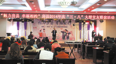 本报讯 (记者 高书文 杨鹏) 8日,我县举行首届“魅力房县· 幸福相约”交友联谊活动,来自全县的120余名单身男女青年参加了活动。活动现场气氛轻松热烈,在游戏、互动等环节,不少单身青年们大方地秀出自己,不断将活动推向高潮。经统计,当天共有8对男女青年成功牵手,并表示希望在活动后能进一步了解和交往。