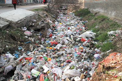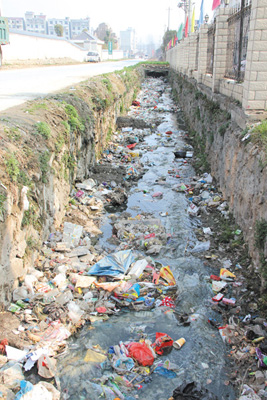本报讯 (记者毛俊杰) “简直太臭了,尤其到了夏天,难闻气味熏的让人窒息,真不知道啥时候有人来管一下?”家住城关镇花宝社区的杜先生向记者埋怨道。11日,记者在王家沟看到这样一幕,沟内丢满了塑料袋、蔬菜果皮等各类生活垃圾,有些地方垃圾堆积导致水流停滞,现场景象让人作呕。