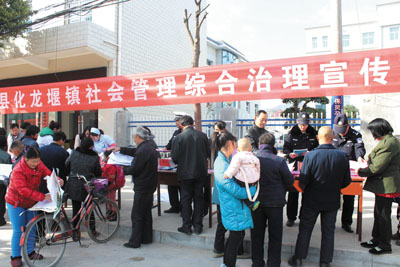 为切实提高广大群众安全法制和防范意识,预防和减少各类治安事件,积极开展网格化管理试点工作,近日,化龙堰镇综治办、派出所、司法所联合开展社会管理综合治理集中宣传月活动,共发放综治平安建设宣传材料2000多份,网格化管理宣传信件1000多张,分发“六五”普法村(居)民读本300多册,解答群众法律咨询20余人(次),在全镇掀起了人人参与社会管理综合治理的良好氛围。