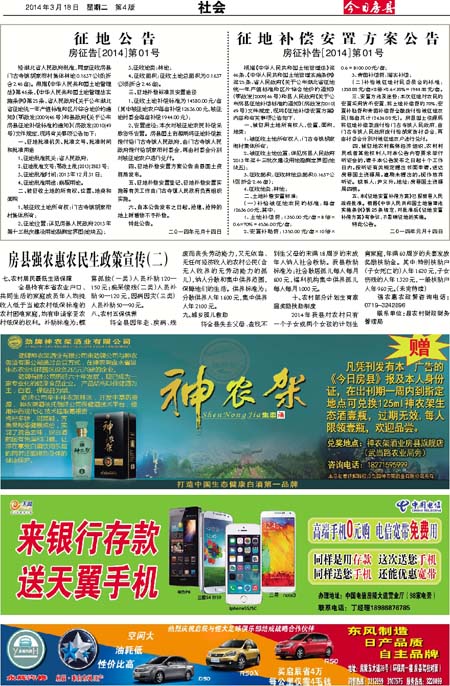 三、安置方法及途径:本次征地对农民的安置采用货币安置,将土地补偿费的70%、安置补助费和青苗补偿费全额拨付给被征地农民(每亩共计12636.00元)。房县国土资源局将征地补偿款拨付给门古寺镇人民政府,由门古寺镇人民政府拨付给胡家街村委会,再由村委会分别对被征地农户进行兑付。