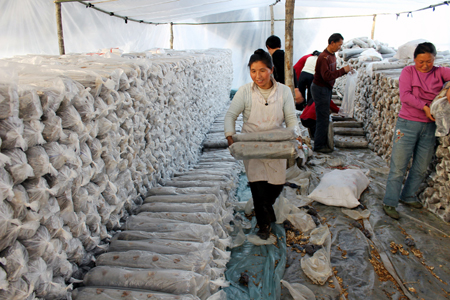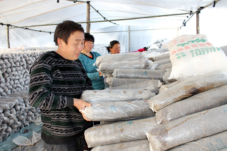14日,尹吉甫镇榔峪河村食用菌种植户刘永安正在自家菌棚里忙着点菌(如图)。入春以来,尹吉甫镇抓住春耕备耕有利时机,引导农户发展农业生产。目前,该镇已涌现出食用菌种植、山羊养殖、蛋鸡养殖、肉猪养殖、核桃种植及中药材种植等近百户产业大户。 (刘中华 陆奎 摄)