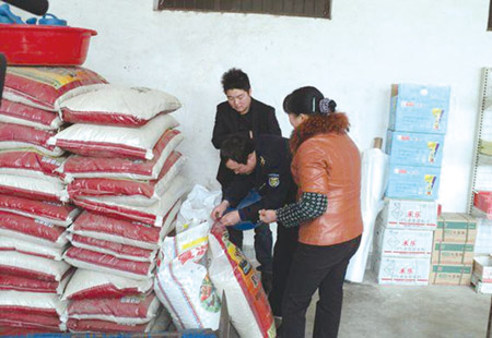 为保障农业春耕生产,维护广大农民消费者的合法权益,连日来,县质监局开展亮盾农资打假专项行动(如图)。截至目前,该局共出动执法人员30余人次,对全县10余家农资产品销售点进行检查,共抽取样品6个批次,确保全县农资市场安全。 (郜丹 王烁 摄)