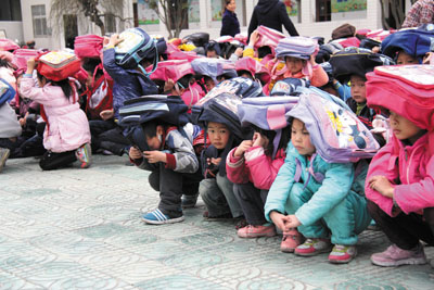 近日,城关镇联观小学组织全校师生开展了一次地震逃生演练。活动中,仅用了2分钟时间,全部学生就被疏散到操场,做到了安全、迅速、有序,达到了预期目的。(郑云平 摄)