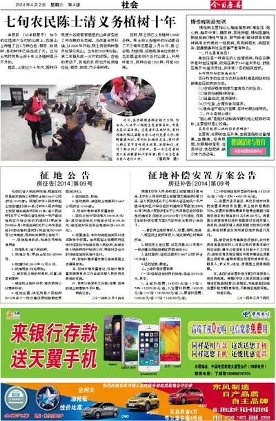 本报讯 (记者赵爱平) 如今的红塔镇六谷村的山坡上,四面山上种植了近3万株白杨、银杏、 核桃树,有的树林已经连成了片。这与七旬村民陈士清十年义务植树是分不开的。