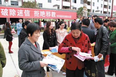 近日,军店镇综治办在唐城广场开展了反邪教宣传活动。为扎实开展反邪教工作,该镇采取发放各类法律法规宣传资料、召开会议等形式,向群众宣传破除迷信、反对邪教的重要意义,教育广大群众远离邪教。