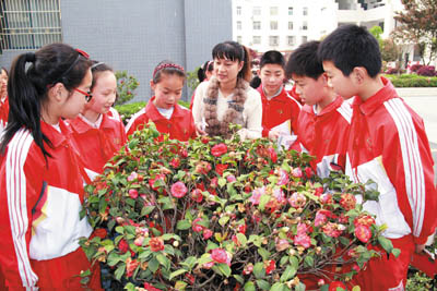 14日,东城小学教师向学生讲述爱护花草树木的方法。为了培养学生从小爱护花草的意识,该校教育学生爱护花草树木要从身边小事做起,从现在做起,做一个绿化、美化环境的好少年。据悉,该校还将通过主题班会、劳动实践等方式,进一步强化学生爱护环境、爱护植物、爱护公物的文明观念。