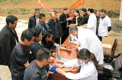 野人谷镇木瓜村地处偏远,当地百姓出行不便,看病十分困难。了解这一情况后,17日,县档案局邀请县城关镇卫生院一批医疗专家,来到该村开展送医、送药下乡服务百姓活动。活动现场,专家们为50余名村民进行健康体检、义诊咨询,免费发放价值2000多元的治疗高血压、感冒、胃炎、心脑血管、眼病等农村常见疾病的药品。 (毛俊杰 刘波 摄)