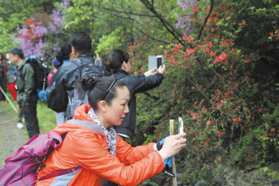 杨春三月天,百花争放时,随着天气的日渐转暖,红塔镇南潭村漫山遍野杜鹃花开,有的鲜红,有的粉紫,千姿百态,煞是好看,引得不少市民前来踏春赏花,尽享大自然的无穷乐趣。