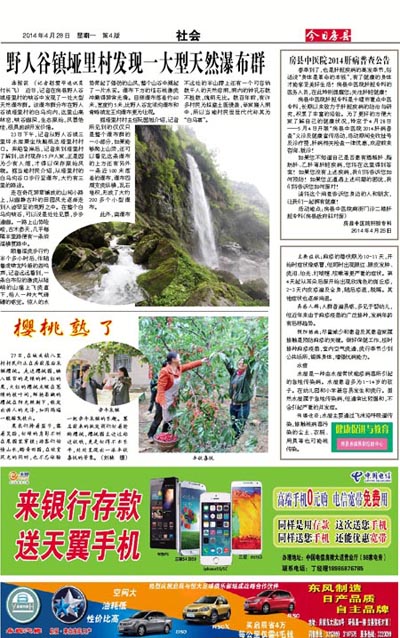 据垭里村村主任阮国旭介绍,记者所见到的仅仅只是整个瀑布群的一小部分,如果能够爬上山顶,还可以看见这条瀑布的上方还有另外一条近100米落差的瀑布,瀑布四周支流纵横,乱石堆积,形成了大约200多个小型瀑布。