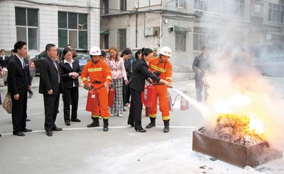 在演练现场,县消防大队辅导员向大家讲解了干粉灭火器的使用技巧和火灾扑救方法,并指导在场员工进行了灭火器使用的实际操练。参演员工态度认真,实践操练效果良好,提高了全体员工的消防意识,为该行的消防安保工作提供了有力的保障。 (戢浩 陈光辉 摄)