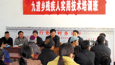 近日,县残联在九道乡举办残疾人实用技术培训班,为当地残疾人讲解各种农村实用技术,并在九道梁村、八里坡村现场为残疾人免费办理残疾证。