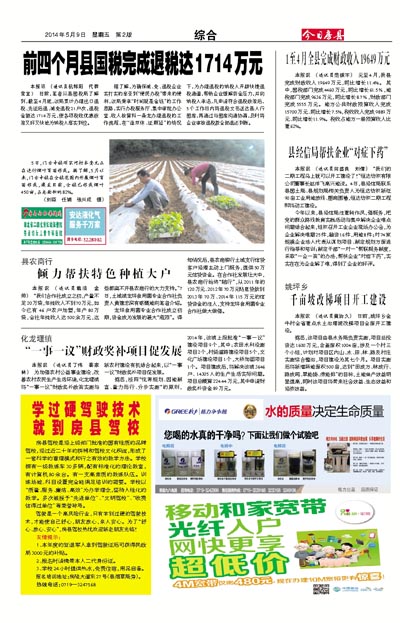 本报讯 (通讯员范振宇) 元至4月,我县完成财政收入19649万元,同比增长11.4%。 其中,国税部门完成4460万元,同比增长61.5%,地税部门完成9636万元,同比增长8.7%,财政部门完成5555万元。地方公共财政预算收入完成15700万元、同比增长7.5%,税收收入完成9889万元、同比增长11.9%。税收占地方一般预算收入比重62%。