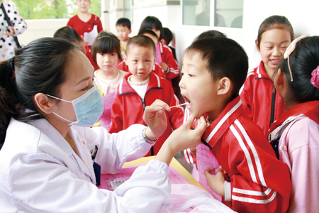 8日,县疾控中心、中医院组织医务人员到县实验小学开展以“预防龋齿,从小做起”为主题的口腔保健知识讲座,并免费为学生检查龋齿。当日,发放宣传资料1000余份,并对发现患有龋齿及窝沟封闭适应症的学生发放通知单,提醒学生家长及时进行龋齿充填、窝沟封闭治疗。据悉,医务人员将从5月8日至6月20日期间,对县实验小学583个、东城小学480个6至7岁的学生进行龋齿方面的免费检查和治疗。 (赵爱平 邓发基 摄)