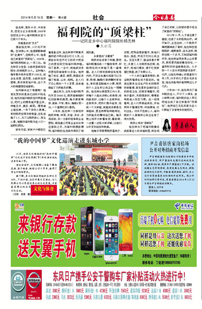 杨先林,现年59岁,中共党员,回龙乡正乡级助理,2008年任回龙乡中心福利院院长至今已有六个年头。