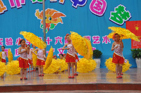 一年一度的春蕾艺术节及庆“六一”活动是实验小学推行素质教育的最好体现。2014年第16届春蕾艺术节,学校以“红领巾相约中国梦”为主题,把庆祝活动分为学生才艺展、师生书画展、“大课间”展示、英语口语竞赛和文艺汇演五部分,在历时近一个月的活动中,全体师生积极参与,认真组织,让各项活动充分展示出学校艺术特色,反映出学生快乐向上的学习情趣和善于发现美、创造美的精神状态。