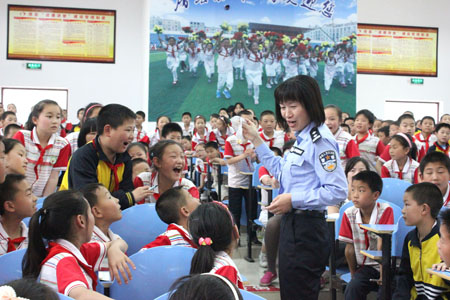 “平安成长比成功更重要”、“背心裤衩覆盖的地方不许别人摸”、“遇到危险可以自己先跑”……5月30日,在县东城小学阶梯教室举办的“心系未来”法律安全知识教育课中,全体学生大声整齐地复述着县公安局阿姨的“儿童安全十大宣言”。