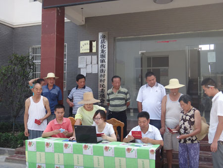 日前,化龙堰镇财政所组织精干人员深入该镇各村为农民提供惠农资金流动查询服务,以确保党的惠农政策不折不扣、深入民心。图为该所流动查询组在该镇西街村为农民提供惠农资金查询。 (秦家林 向东风 摄)