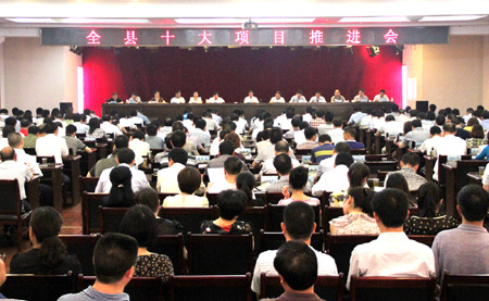 本报讯 (记者刘臣通讯员胡传宏) 9日,县委副书记柯大成、县长蔡贤忠在全县十大项目推进会上要求,全县上下要紧盯目标任务,加快项目建设,全力冲刺“双过半”。