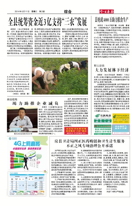 本报讯 (通讯员程培武 向强) 近日,笔者从县农业办公室获悉,今年县委、县政府统筹涉农资金28703万元,支持农业产业化建设。一是特色产业建设类资金21955万元,重点支持八大产业建设;二是美丽乡村建设类资金6748万元,重点支持美丽乡村及观光农业示范园建设。