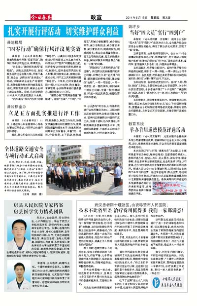 5月15日一大早,市人民医院脊柱外科患者刘先生的儿子,将一面写有“济世良医、妙手回春”的锦旗,送到该院脊柱外科副主任赵宙手中,感激地说:“你们这里的技术、服务一点也不比省城大医院差,而且你们的治疗费用还低得多,是真正为人民服务的好医院!”