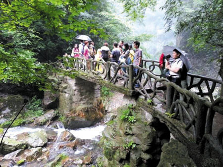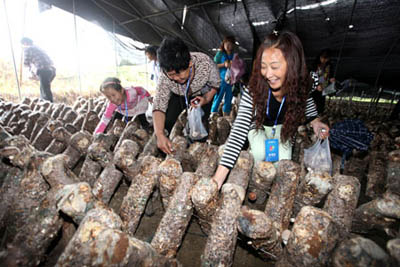 14日,180位秦楚网友来到我县开展“舌尖上的房县之旅”主题活动。活动中,网友们游览了“双野”景区,品尝了地道的房县美食。在土城镇小花菇生态培育基地,老农饶长青为网友讲述了《舌尖2》拍摄背后的故事。网友们争先恐后地采摘鲜嫩的小花菇,品尝房县黄酒。当日,土城镇的黄酒被抢购了2500斤,销售额2万多元;香菇零售加团购合计销售额达到了15000余元。图一为网友正在采摘小花鼓;图二为网友在欣赏野人谷美景。 (赵爱平 张立华 摄)