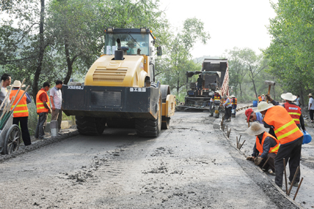 29日,记者在346国道青峰镇三里沟段看到挖掘机、压路机、拌和机正在紧张施工,这标志着346国道房县段大修工程正式开工。据悉,该工程采用半幅道路施工方案,每天可铺设水泥稳定砂石一公里。(王玮 王东 摄)