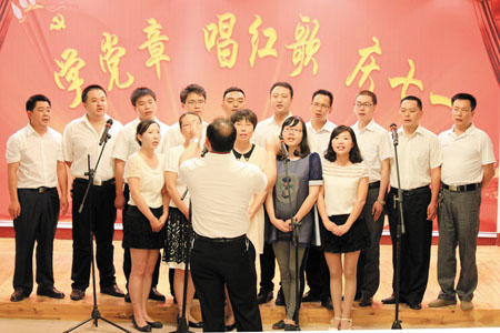 七一前夕,县纪委监察局机关代表队正在演唱《纪检监察之歌》。为庆祝建党93周年,县纪委组织开展了“学党章、唱红歌、庆七一”系列活动,全面激发纪检监察干部对党的深厚感情。 (戴克华 向涛 摄)