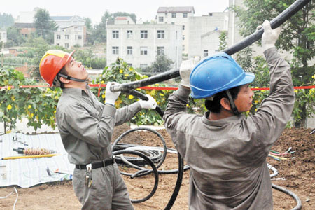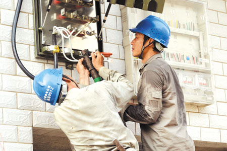 日前,县供电公司职工正在进行用户户表改造。入汛以来,为确保给用户提供可靠的供电服务,县供电公司全员上阵,实行24小时动态监控,确保电力设施安全运行。图一为用户户表改造;图二为台区改造解决用户低电压问题。(赵爱平 任翔 摄)