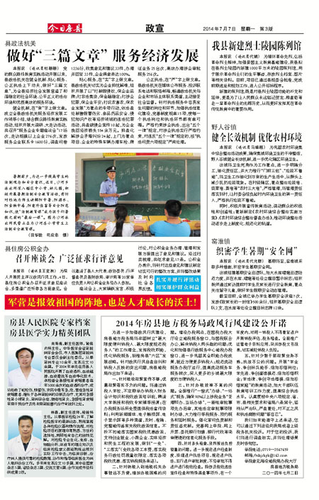 本报讯 (通讯员杜珊珊) 党的群众路线教育实践活动开展以来,县政法机关在健全机制、贴心服务、公正执法上下功夫,做好“三篇文章”,为全县经济社会发展营造了和谐稳定的社会环境、公平正义的法治环境和优质高效的服务环境。