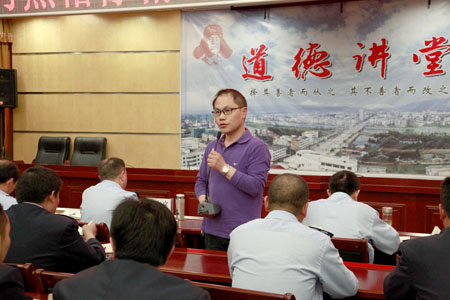 县委宣传部副部长、县文明办主任赵礼江参加县地税局开展的“道德讲堂”活动,并作活动点评。