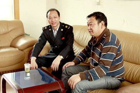 副局长卢立成(中)带着最新税收优惠政策深入企业上门宣讲。