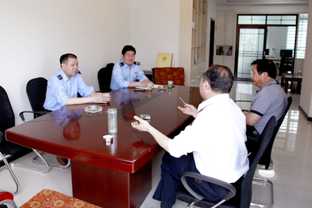 副局长况冰(左)带队下户走访启扬工贸等重点企业