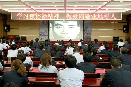 全体地税干部职工学习《为民书记郑培民》、《贪欲之害》等专题教育片。