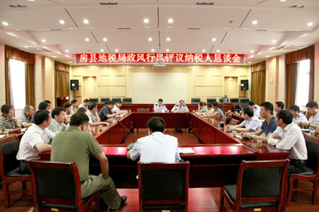 在行评期间,县地税局邀请了24位重点企业纳税人代表来地税局开展座谈,诚征纳税人意见和建议。