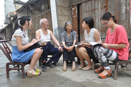 近日,大木厂镇大木街村89岁的村民刘普化和84岁的老伴王子贵给湖北根源旅游开发公司员工讲述当地民风民俗。民风民俗是独特的文化,大木厂镇党委政府面临消亡危机的民风民俗,从旅游产业的发展,邀请旅游开发公司深度发掘民风民俗。