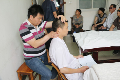 县残联积极推进盲残人群就业,根据盲残人群自身特点,多次开展康复按摩培训班,对有劳动能力,且热爱康复工作的盲残人员进行免费培训,目前已有20多名盲残人员通过学习或自己开店挣钱,或在康复机构打工挣钱,实现了自食其力。图为盲残人员在县永康康复医院免费接受技能培训。(李宇 摄)