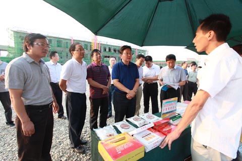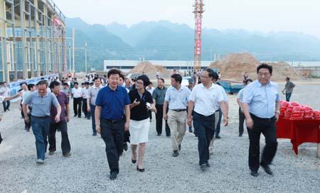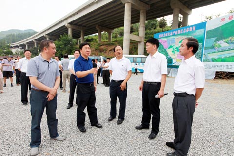 北城生态产业园是房县实施“工业强县”战略、打造十堰南部生态工业新区的重要部署。目前有7家投资5000万元以上的企业与县政府签订了投资协议,即将落户园区。图为市委书记周霁(左二)在了解园区建设情况。