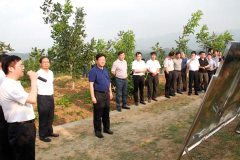 我县积极调整农业产业结构,统筹各项财政资金2.87亿元,大力发展中药材、食用菌、核桃、山羊、大鲵、茶叶、烟叶、蔬菜八大农业特色产业。图为与会人员在化龙堰镇古城核桃基地参观考察。