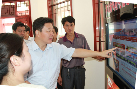 推行农村综治网格化管理,为县域经济建设保驾护航。图为周霁一行在窑淮镇界山村察看网格化管理运行情况。