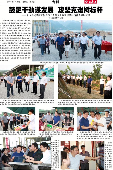 今年以来,全县上下高举“四化”协调发展示范区旗帜,紧紧围绕“稳增长、调结构、促改革、惠民生”工作要求,扎实推进“三大目标、五件大事、十大项目”,突破发展“八大产业”,经济社会保持了健康发展态势。今年上半年完成生产总值24.3亿元,固定资产投资51.3亿元,财政收入2.7亿元,地方公共财政预算收入2亿元,社会消费品零售总额16.9亿元,外贸出口2661.7万美元,利用外资390万美元,农民人均现金收入4050元,城镇居民人均可支配收入8520元,基本实现了“双过半”目标任务。在全国经济发展速度放缓的大背景下,取得了可喜成绩,为全市县域经济发展又一次树立了标杆。继2013年全市县域经济工作会在房县召开之后,本月29日,房县又作为全市县域经济工作会与会人员参观考察点之一,再次接受了市委书记周霁等领导的“检阅”。