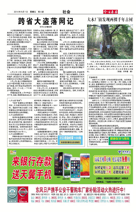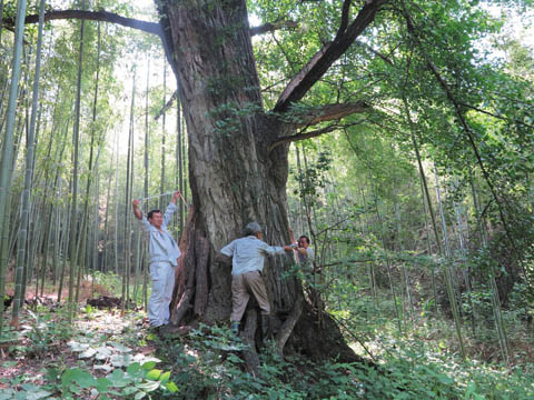 日前,记者从县林业局获悉,大木厂镇五谷村发现两棵千年古树。一棵是榔榆树,树龄达3560年,高21米,胸径207厘米,冠幅12米。一棵是银杏树,树龄达1350年,高35米,胸径157.5厘米,冠幅6.5米。图为工作人员正在测量银杏树胸径。(陈锐 邓学基 摄)