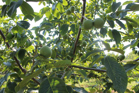 10日,笔者在化龙堰镇古城村竹家垭核桃基地看到,核桃树挂果良好,丰收在即。该核桃基地建成于2011年,经过短短的3年时间,今年已经全面挂果,最大的一棵树结核桃600余颗。近年来,化龙堰镇致力于打造“核桃专业镇”,截至目前,在古城、西街、高川、长望、桃园、汤峪等村建优质核桃基地共1.8万亩,首批建成的1200亩核桃基地已经全部挂果,今年将迎来第一个丰收年。 (张丽莉 摄)