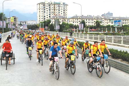 本报讯 (记者赵爱平 高书文通讯员李丽) 8日,时值全国第6个全民健身日,“湖北房县野人车队”正式成立,并举办首次环城骑行活动。县委常委、宣传部部长徐锦凤宣布骑行活动开始,副县长林华为车队授旗,县政协副主席王学能出席成立仪式。