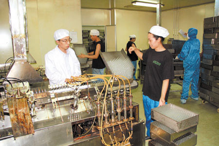 12日,记者在武当动物药业制剂车间看到,工人们正在忙着生产“百草圣医”针剂。据悉今年来,武当动物药业已实现销售收入1.1亿元。其中以“百草传奇”、“百草圣医”、“克林新”、“中华毒肽”等为主的180多个品种兽药畅销全国各地。同时有力地带动了我县中药材生产,月使用以穿心莲、鱼腥草等50多种道地中药材10吨以上。
