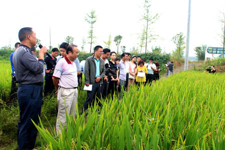 上月29日,县农业局组织农技人员到县粮油作物高产科技示范基地进行观摩学习,开展基层农业技术推广人员业务学习及培训工作。图为观摩组在红塔镇塘溪村水稻高产创建核心示范区现场开展技术交流,总结学习示范基地创建工作中的好经验和好做法。