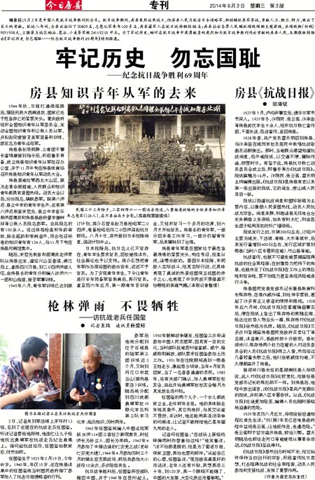 抗战宣传,也就不可避免地要揭露阻碍抗战的社会黑暗面;在封建势力把持下的房县,也就决定了《抗战日报》在工作上的艰巨性和复杂性,要不怕阻力甚至承担风险地进行斗争。